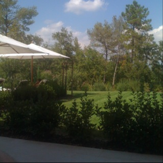 This post was a test of the Typepad gizmo for iPhone. It worked rather too well in that the photo I snapped (of the view from poolside at our resort hotel’s spa)was posted before I realised and before I could add some text! By way of explanation "Idle time" is how my law firm’s time recording software categorises my hours today (apart from the three of them I spent dealing with emails before breakfast). "Idyll time" was more like it, I thought. The second photo is of our view as we walked "home" to get ready for dinner.