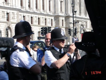 Today is the day for Old Holborn's public spirited attempt to make citizen's arrests of various MPs outside the Houses of Parliament. Nothing in the media as yet, but Henry of North London has blogged from the scene, including this (probably illegal) photo of the police photographing all present. Wonderful.