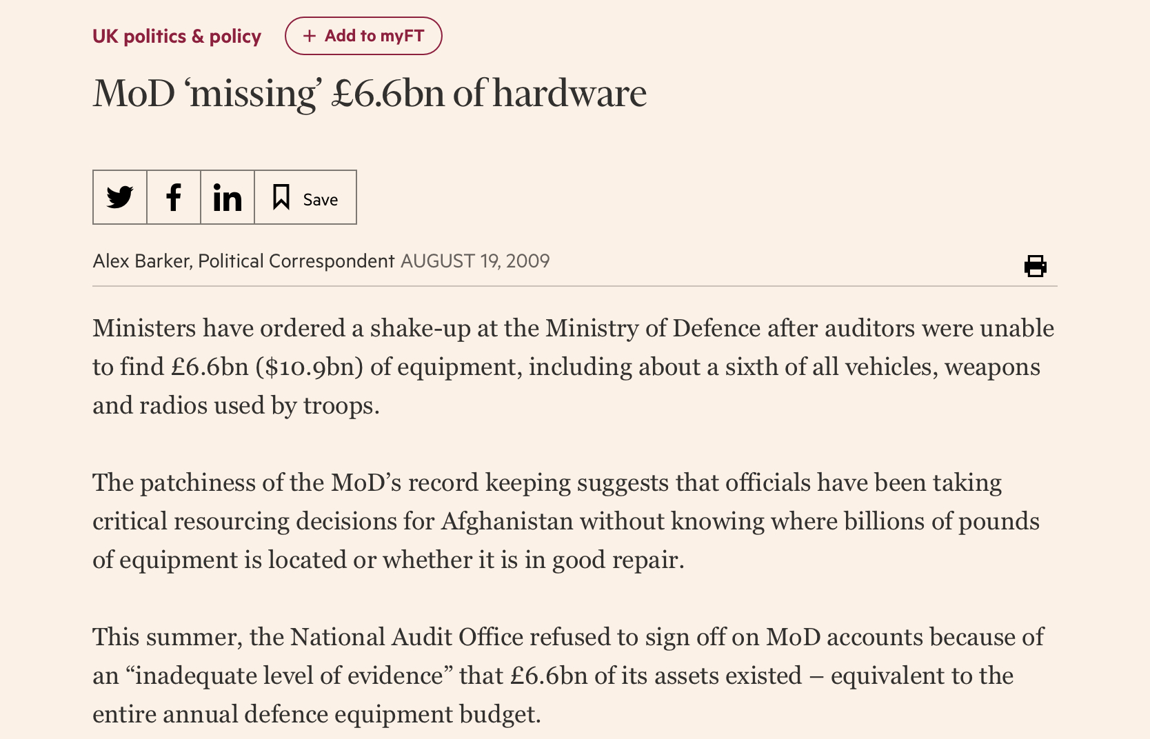FT.com / UK – MoD ‘missing’ £6.6bn of hardware