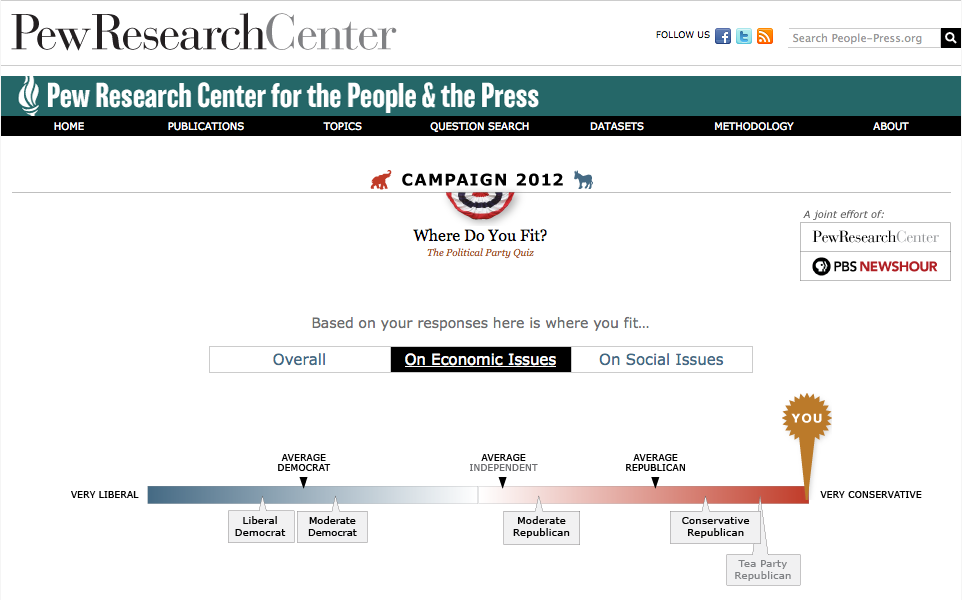 You can find the quiz here, if you want to try it yourself. I guess most libertarians will get very similar results, though the lack of an "it's none of the government's business" option will make for unreliable outcomes on social issues.