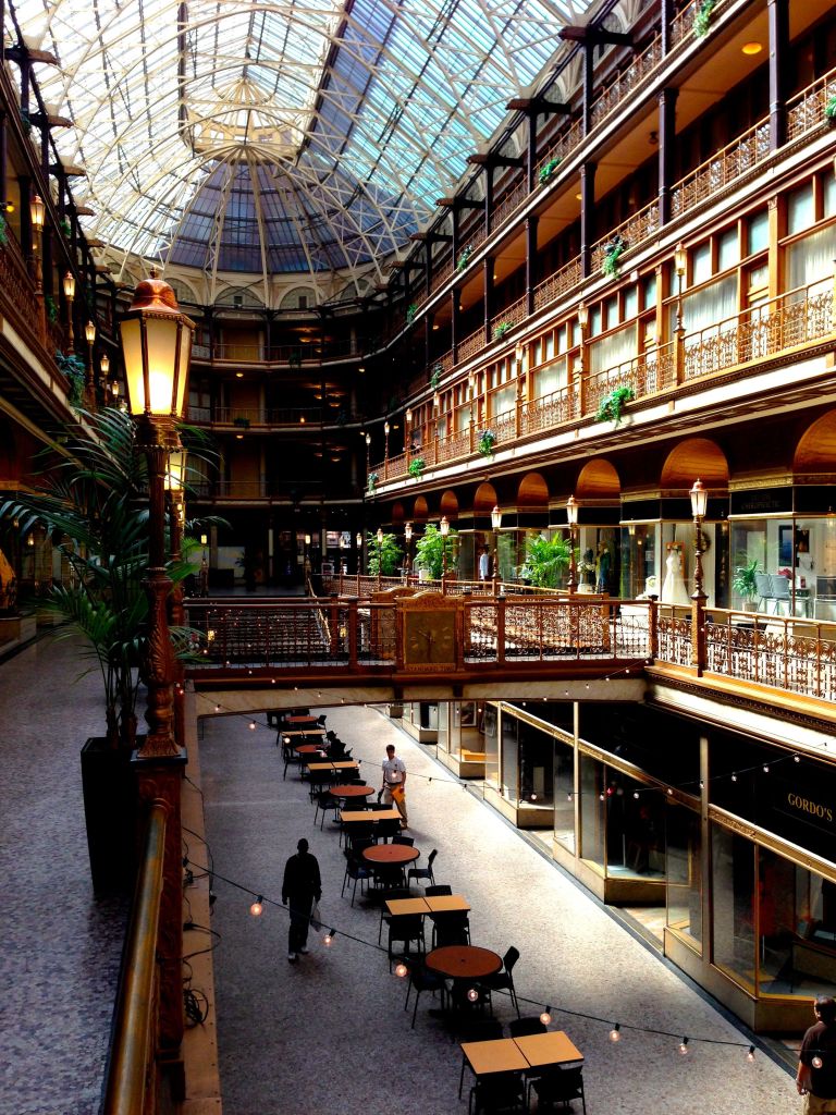A beautiful, elegant shopping arcade – with precious few customers, some empty shops and some let to makeweight social tenants.