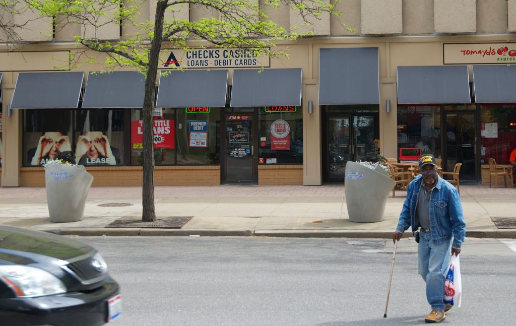 Amid the prosperous-looking downtown, a shop front that betrays reality