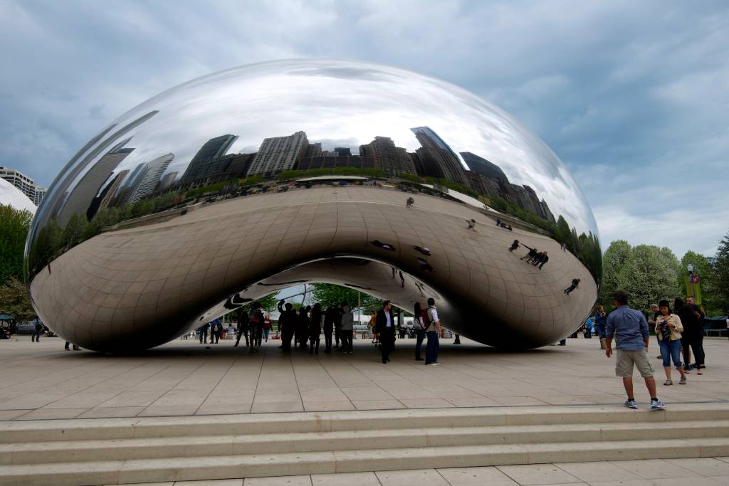 I loved Cloud Gate, the 100 ton sculpture by Anish Kapoor in the Millennium Park. So does everyone else. I have never seen a public sculpture with which people so loved to engage. The whole point of it seems to be that you see in it the city in which it stands and the people relating to it. Once you have taken it in, you stop seeing it and start seeing what it reflects.