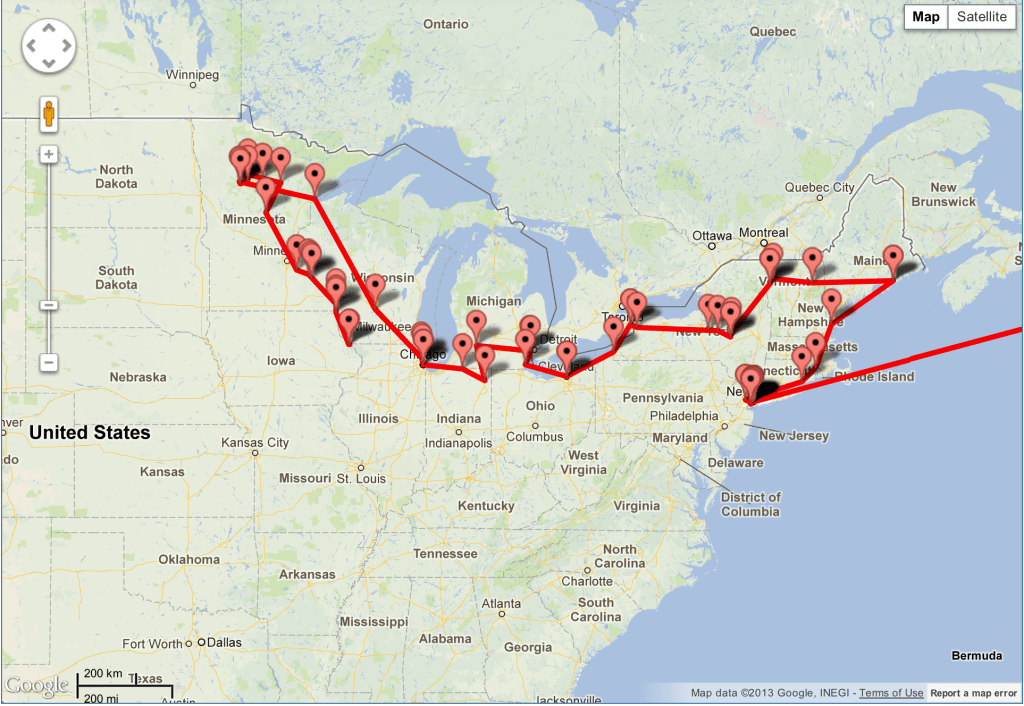 I was disappointed that my chosen lunch spot, the historical Trempeleau Hotel, Restaurant and Saloon, was not yet open for the season. True to form for this trip, it will open a couple of days after I stopped by. I had a more prosaic lunch break at La Crosse, a pleasant little university town recently voted one of the best places to live in the States. I wasn’t able to find the historic centre mentioned in my guide book in the time available and ended up eating chain food on the strip, where the wi-fi (oh the constant quest for wi-fi) is anyway more reliable.