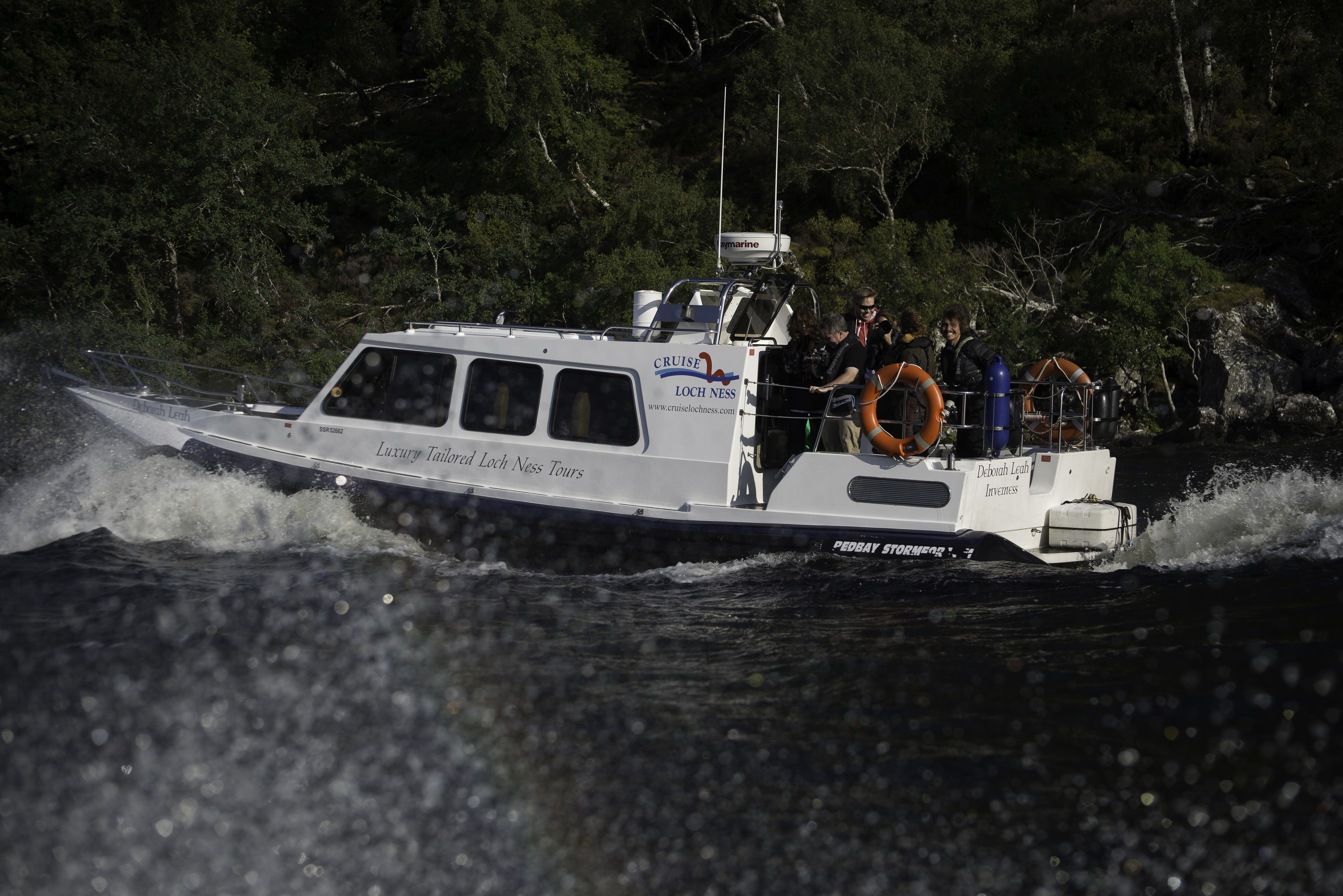 In the afternoon our group divided into two. One group cruised Loch Ness in a comfortable boat with a cabin. The more hardy of us went out on a large inflatable that sped across the loch, occasionally becoming airborne. It was a brilliant experience but a photographic challenge. I had thought a wide angle lens would result in shots that were mostly water so I took my telephoto zoom. It was hard to hold that steady on our fairground ride of a "cruise". The shots here are of our party out on the "soft" boat and of Joe McNally on the bridge of the "hard" boat.