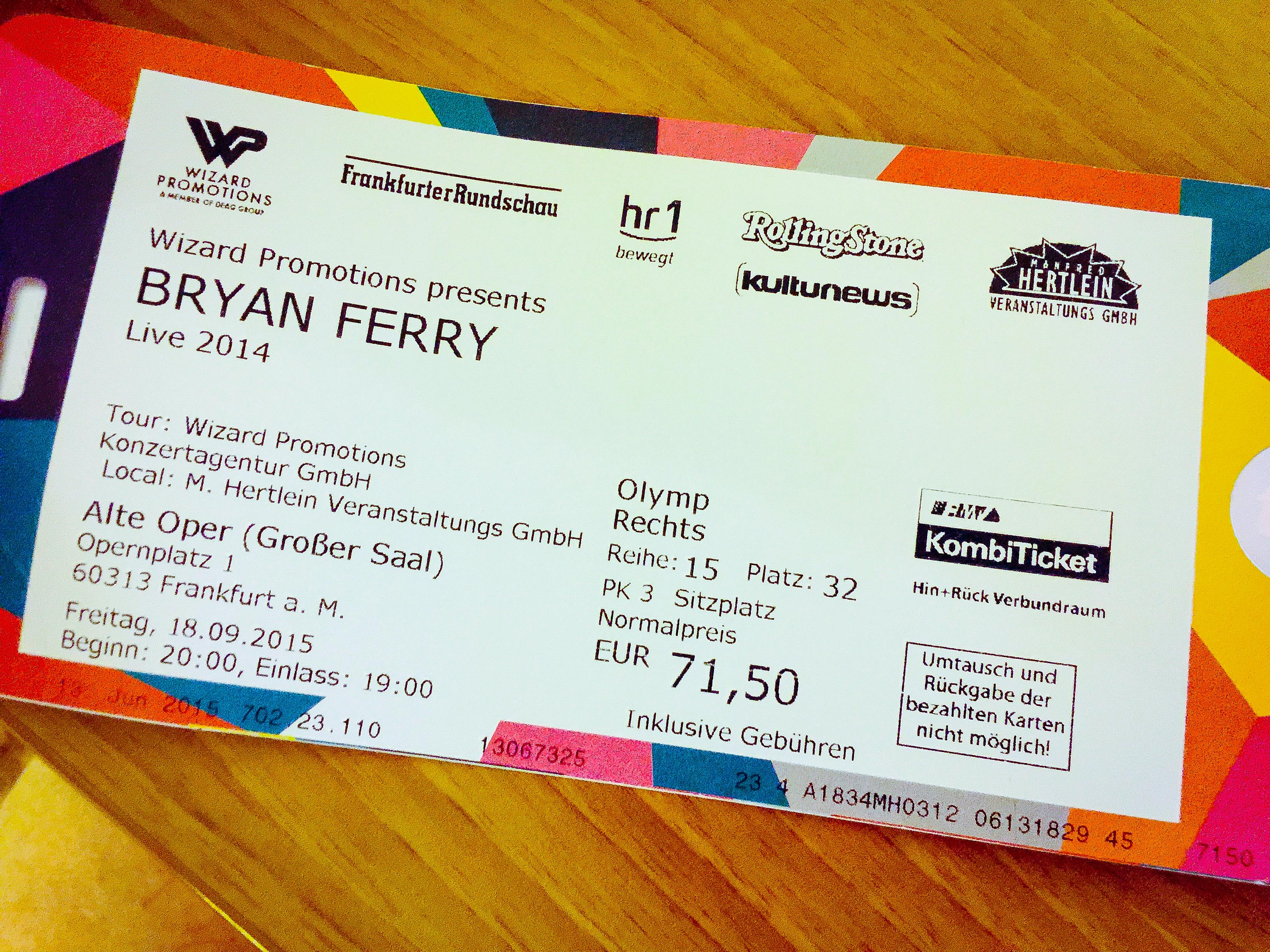 So this mad idea reached fruition. After a few beers and a schnitzel, the Navigator (for it is he) and I went to the Old Opera House and saw Bryan Ferry perform. The support act was a young lady from Berlin; musically-educated in London. Her name, implausibly, is Femme Schmidt and she was pretty good. I rather pitied her as a partisan audience of a certain vintage was clearly waiting for the main event but at 25 it was probably a good step forward for her.