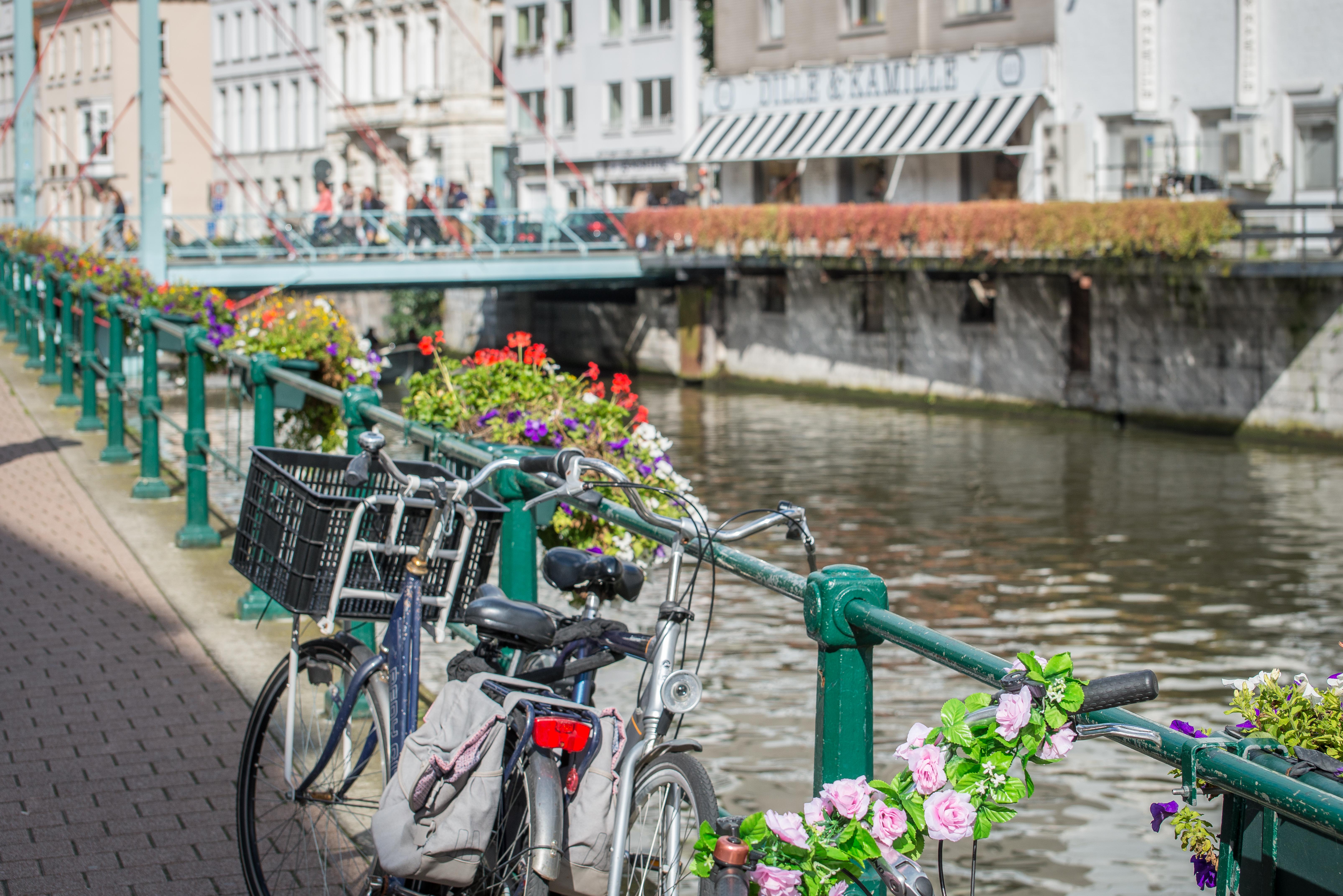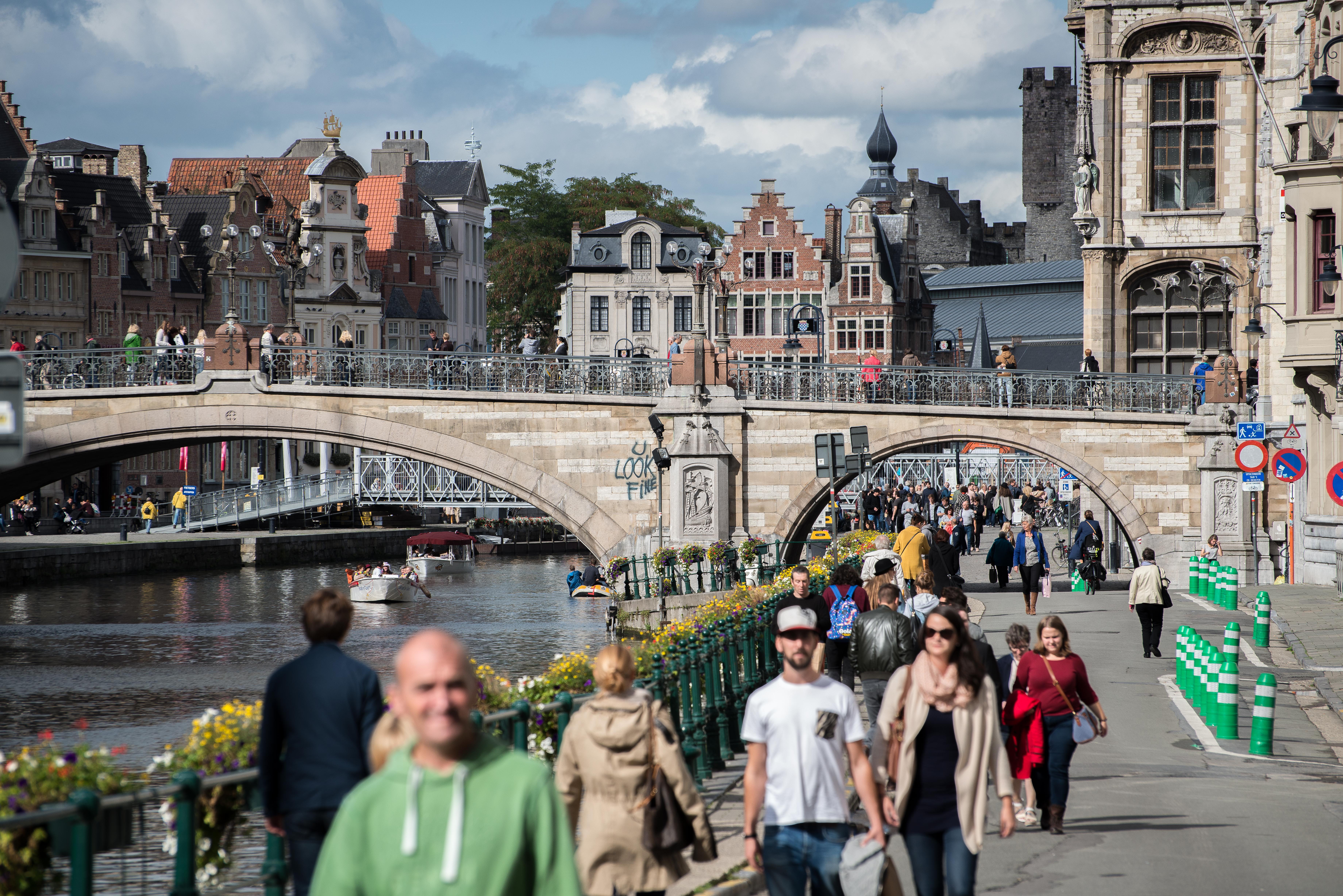 We took an afternoon break in Ghent; a pretty town I had never seen before. We found a central parking place and – after I had drunk a local coffee with inexplicable fruit puree in the bottom – strolled through the pedestrianised centre and along the river. Some of my photos are above. Don't ask about the shoes suspended above the street. I have no idea what that's all about.