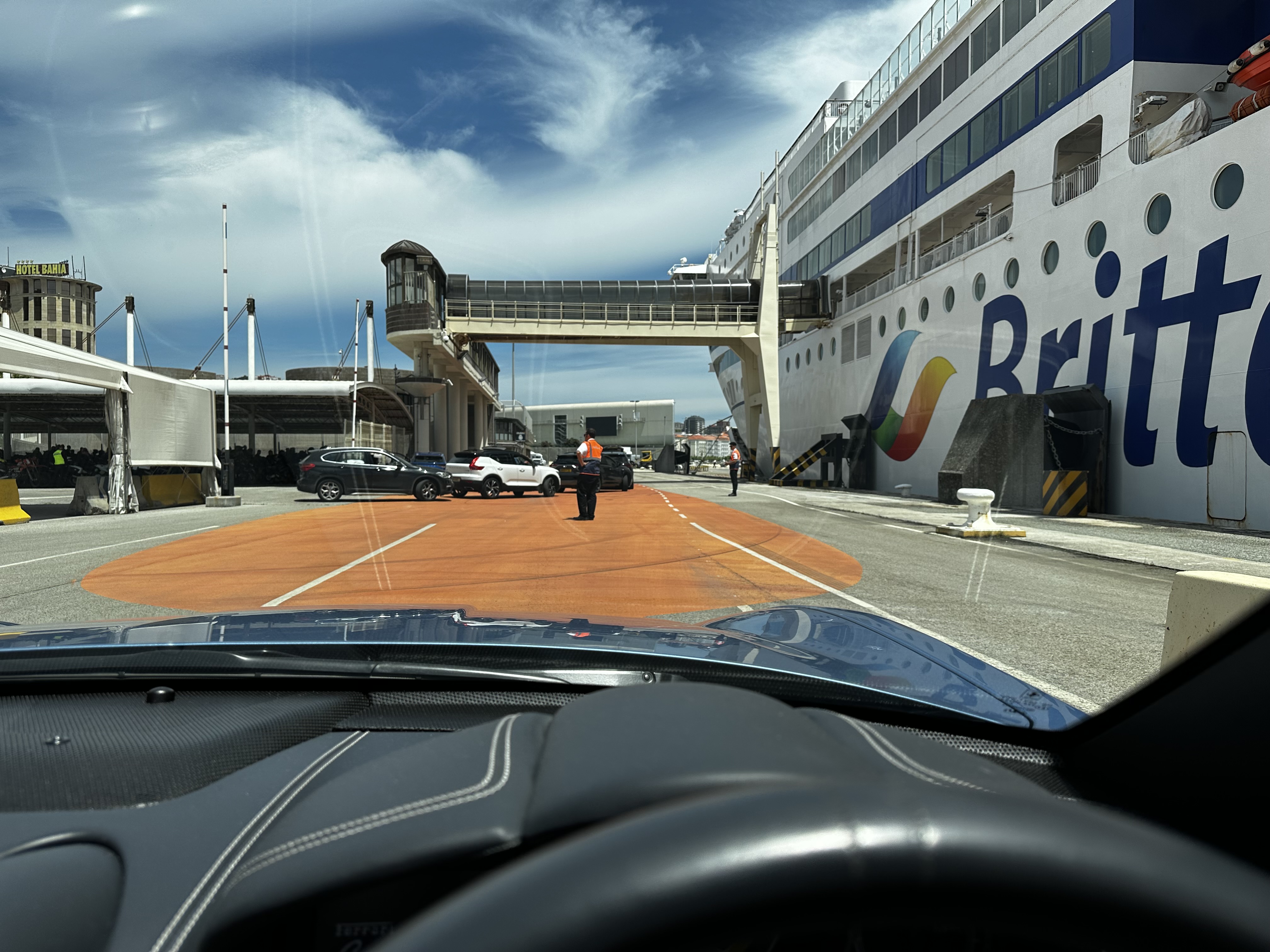 I delayed checkout to the last moment as the ferry port was less than a mile away and I didn’t want to toast in the sun too long. I arrived two hours before the last check-in and sat patiently in the bright sun with the roof down, apart from a break for lunch in the cheap and cheery port café.